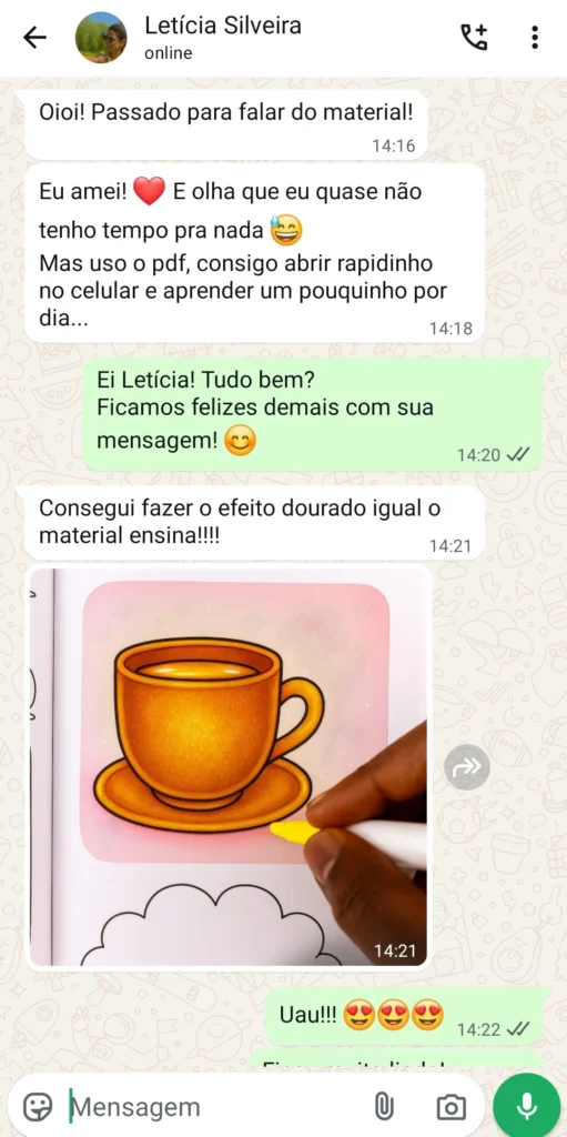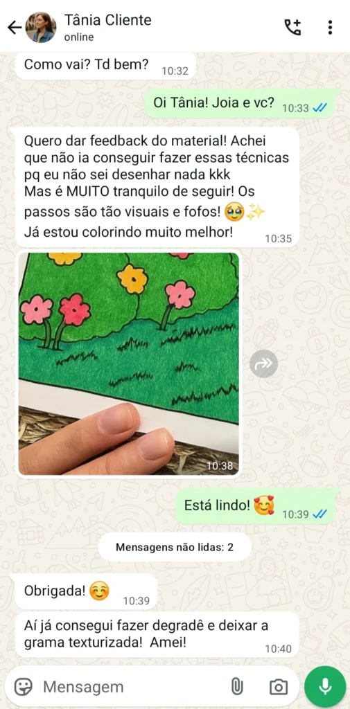 Colorindo com amigos e meus sobrinhos, percebi que era possível ensinar técnicas de um jeito simples e gostoso, sem complicação — e ainda assim alcançar resultados surpreendentes. Foi aí que criei esse projeto “Textura incrível”: uma forma de compartilhar com você o que aprendi e o que acredito.