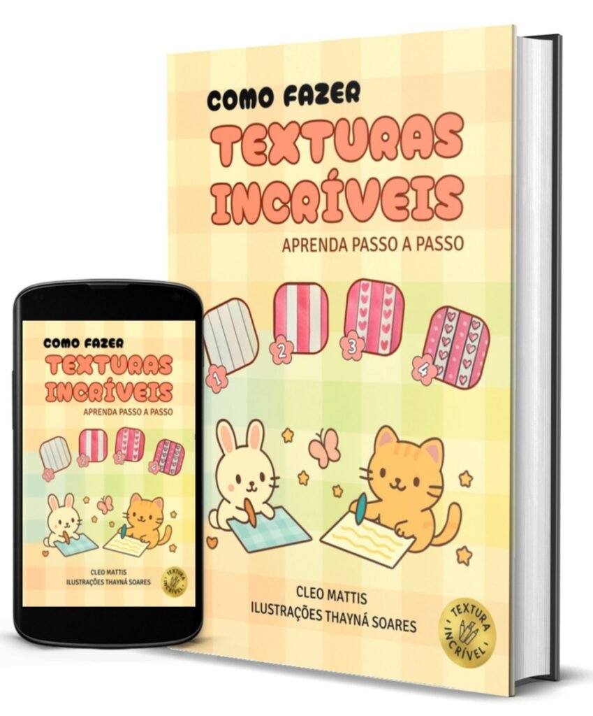Você vai aprender a criar VÁRIAS texturas que imitam materiais do mundo real como madeira, tecido, pelúcia, vidro, glíter e muito mais— tudo com técnicas simples em 4 passos.